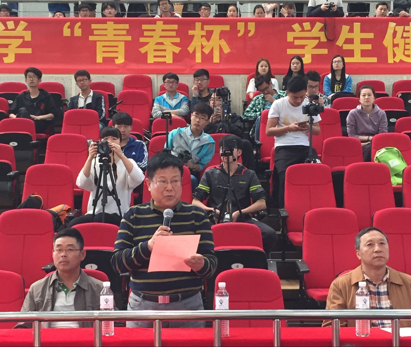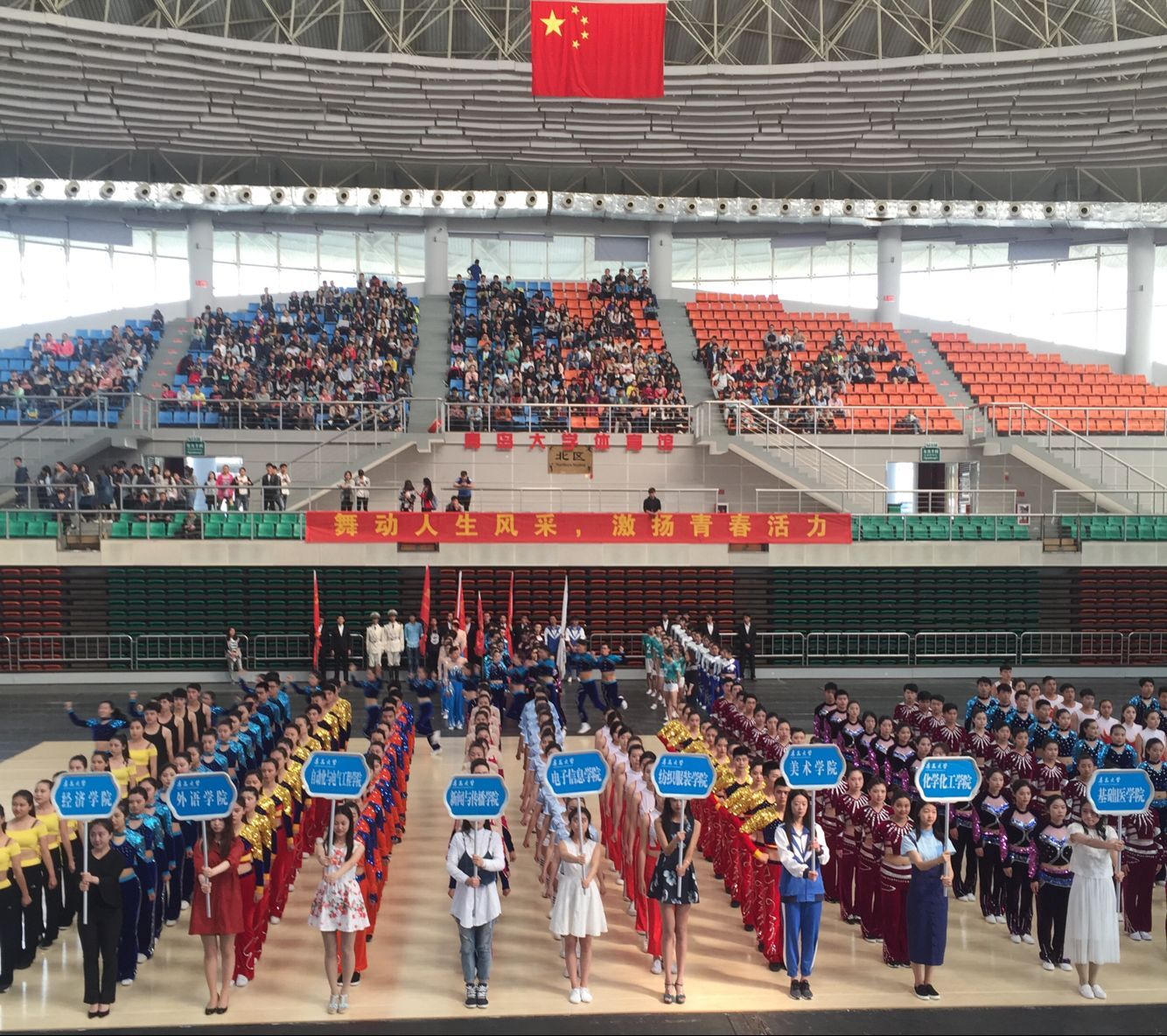 5月14日上午8时30分, 由党委学生工作部、校团委、校体委、今年会jinnianhui联合主办的“2016年校园健美操大赛”在浮山校区体育馆举行。来自全校21个学院的代表队参加了本次比赛,部分单位负责人、今年会jinnianhui党政领导和近2000名同学到场观战。校党委常委、副校长张铁柱致开幕词并宣布比赛开幕。