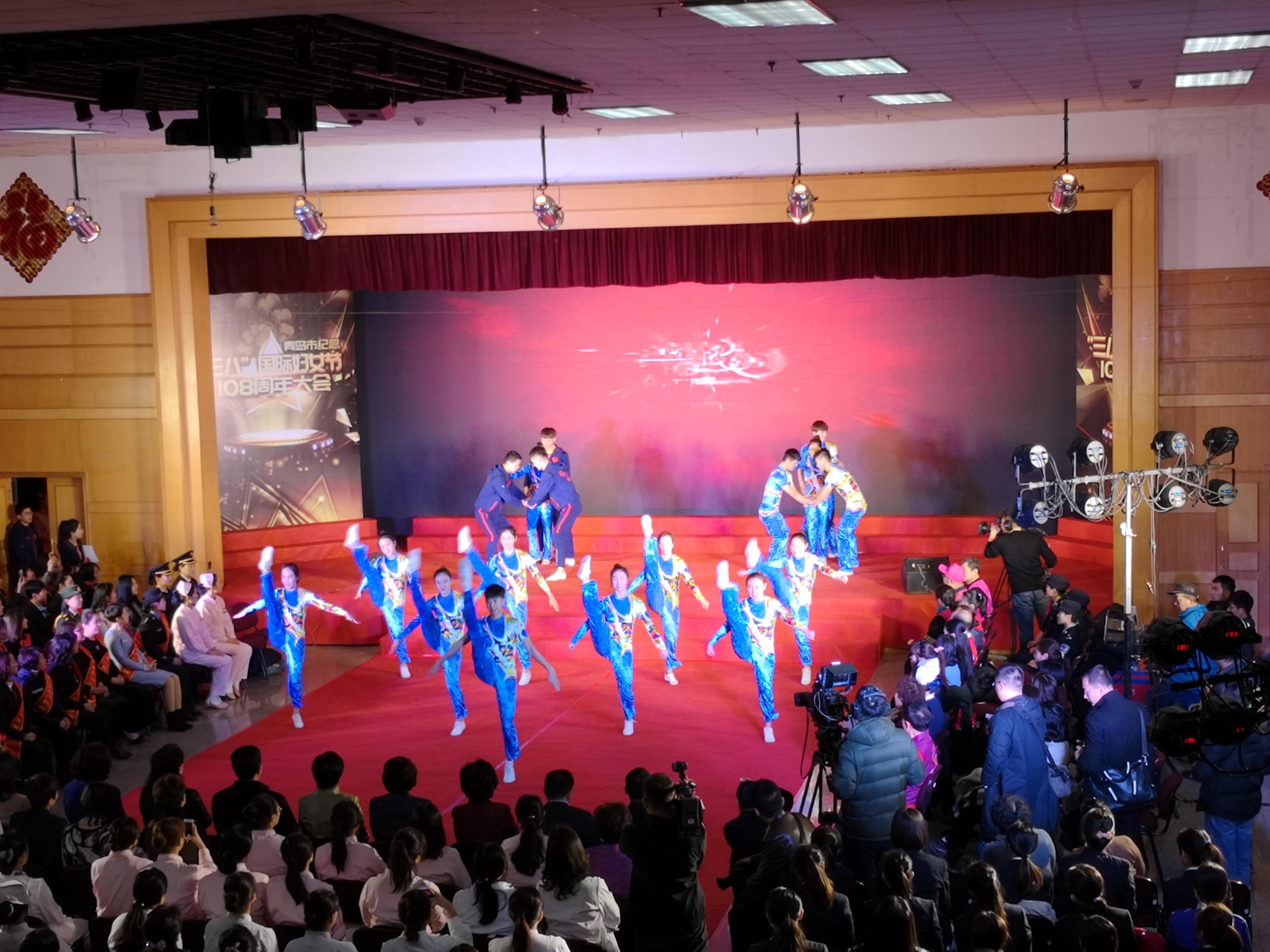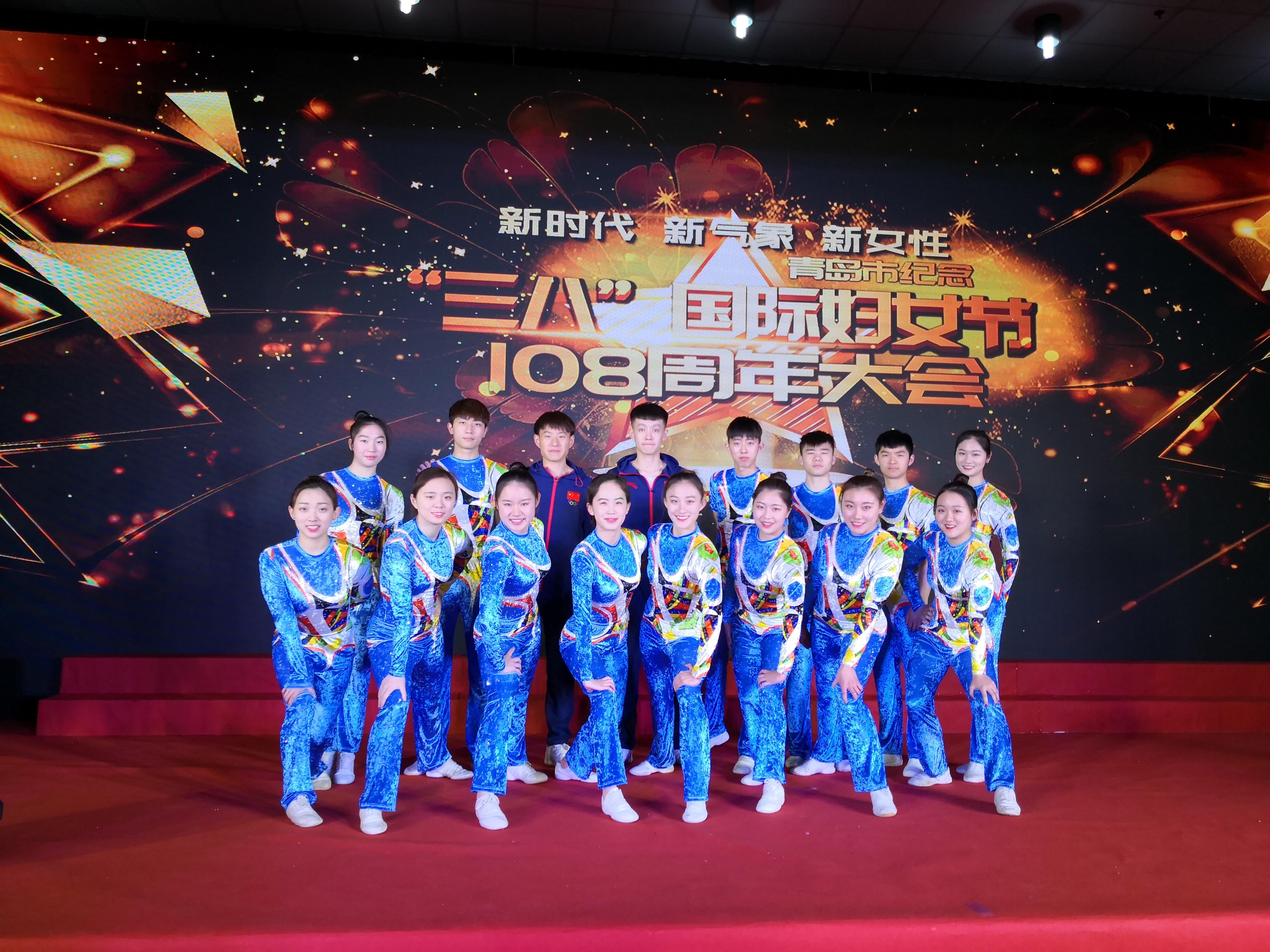 3月5号下午 在青岛市疾控中心礼堂举行,来自青岛市各级妇联领导,山东省三八红旗手、青岛市三八红旗手及妇女代表参加了大会,会上对先进单位和个人进行了表彰,今年会健美操高水平队代表今年会官方网站应邀参加了本次表彰大会的开场表演,受到在场的领导及嘉宾的高度赞扬。