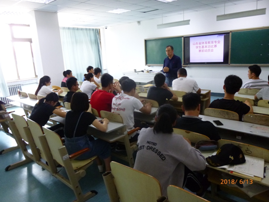 山东省高校体育教育专业学生基本功大赛由山东省教育厅主办,每两年举办一届,旨在贯彻落实教育部《普通高等学校体育教育本科专业各类主干课程教学指导纲要》精神,检验我省高校体育教育专业教育教学成果,总结交流教育教学经验,促进高校体育教育专业教学改革与发展,进一步提升体育人才培养质量。本届比赛分为专业基础理论、说课、田径、体操、足球、羽毛球、武术等七大部分,来自全省的17所高校的340名体育教育专业学生参加了比赛。