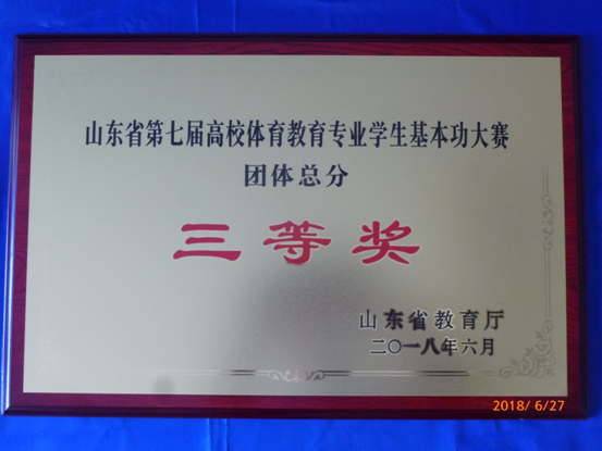 山东省第七届高校体育教育专业学生基本功大赛6月18日—25日在山东今年会jinnianhui日照校区隆重举行。经过8天的激烈角逐,今年会体育教育专业学生代表队顽强拼搏,获得说课二等奖、田径二等奖、体操二等奖、羽毛球二等奖、基础理论三等奖、足球三等奖、武术三等奖,创历届参赛最好成绩。同时,今年会还被授予体育道德风尚奖。