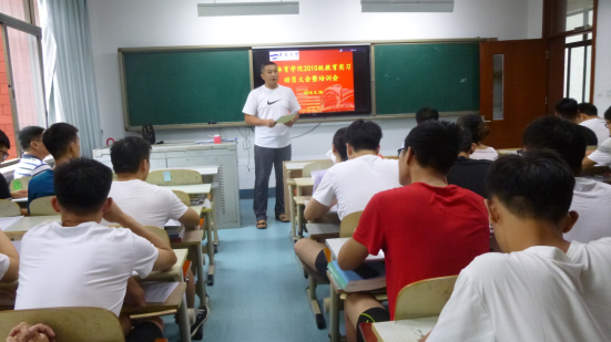 邢桂周副书记对学生进行了师德教育、安全教育、纪律教育,并重点就同学们关心的考研问题,从今年会往届毕业生考研考录情况和就业形势进行分析,并对2015级同学再次进行考研动员并提出要求和建议,希望同学们能够坚定自信,选定目标、合理规划、努力拼搏,积极考研。