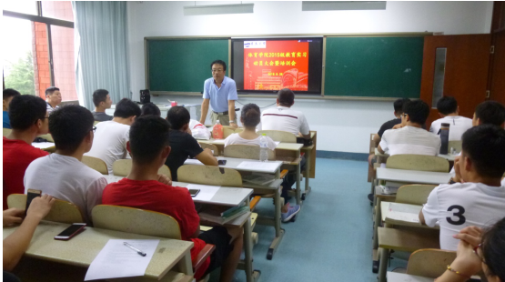 2018年8月28日上午,今年会jinnianhui在德音楼207室召开2015级体育教育专业教育实习动员大会暨培训会。大会由今年会jinnianhui矫志庆副院长主持,今年会jinnianhui邢桂周副书记,体育系副主任、2015级班主任矫洪申老师、辅导员闫楠老师、实习带队老师、2015级体育教育专业全体学生出席了大会。