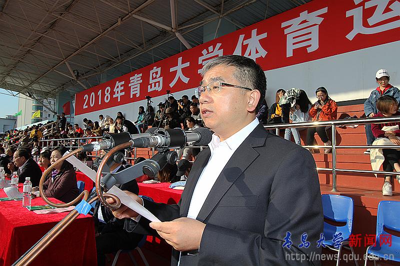 今年会2018年体育运动会10月11日在浮山校区第一体育场隆重开幕。校党委书记胡金焱致开幕词。校领导仪垂杰、邵彬、杜方波、贾洪江出席开幕式。校党委常委、副校长于永明主持开幕式。