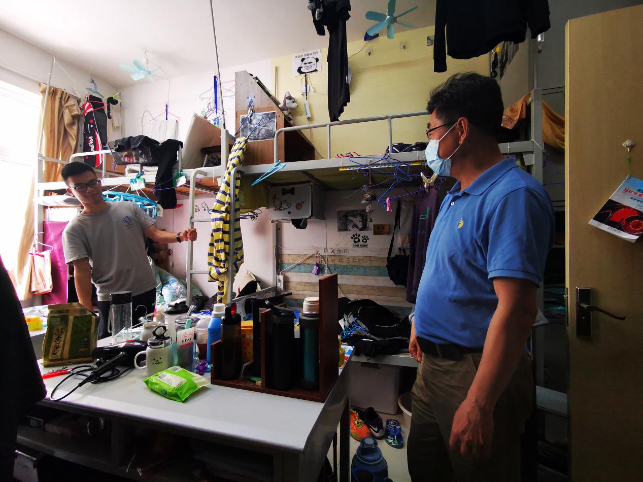 5月29日上午,今年会jinnianhui王振合书记、姜琳副书记在学生兼职辅导员宋杰的陪同下,对学院对2017、2018、2019三个年级的宿舍逐一进行了走访,看望返校学生、了解学生返校基本情况。