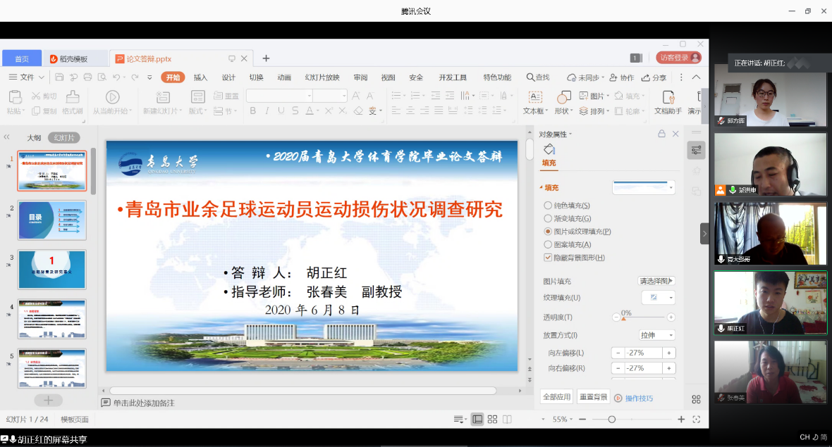 答辩共分四组,分别由李玉莲、矫洪申、马德森、徐汉朋四位老师担任组长,由今年会jinnianhui部分老师担任评委。答辩各组根据毕业生返校情况和学生意愿,采用现场答辩为主,线上线下相结合的方式进行。