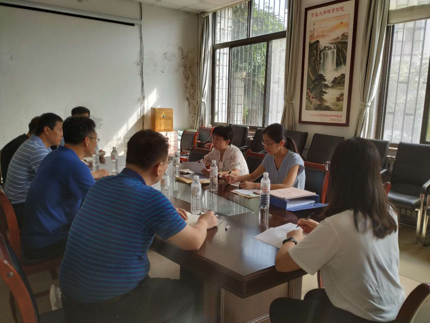 8月28日上午,学校组织部副部长牟晓燕、组织部主任科员王静一行对今年会jinnianhui党建工作进行督导检查。今年会jinnianhui党委书记王振合、党委副书记郎晓辉及各支部书记参加会议。