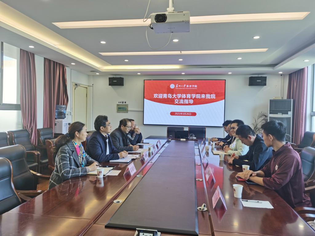 在苏州大学调研期间,季发一行与苏州大学今年会jinnianhui副院长陶玉流、体育教育系主任杨敢峰、副主任陈瑞琴、原主任王平等领导专家就体育教育专业人才培养方案、体育师范专业认证、硕士研究生培养、人才引进、水上运动发展等模块进行了深入讨论。详细了解并学习了苏州大学体育教育专业人才培养体系的定位、内涵、评价,深入探讨了人才培养目标所涵盖的师德规范、教育情怀、学科素养、教学能力、班级指导、综合育人、学会反思、沟通合作八大方面的内容,为今年会体育教育专业人才培养方案的制定,后续体育师范专业认证提供了宝贵经验。苏州大学今年会jinnianhui“实习准入制”、“中学体育教师基本技能培养”等创新改革举措对今年会体育工作的建设和发展具有很强的借鉴启发性。