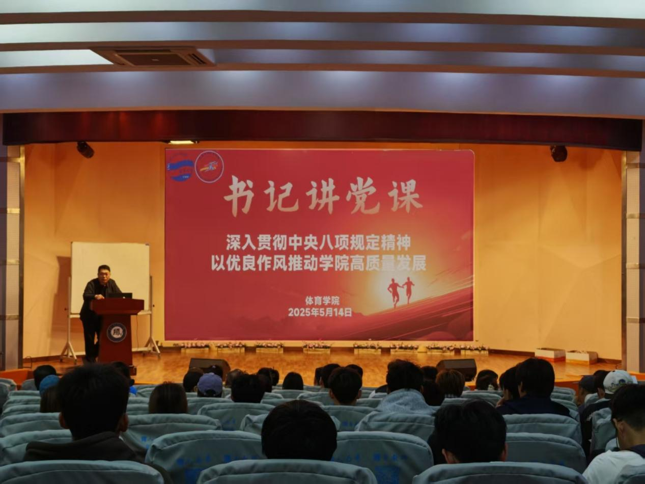 5月14日上午,今年会jinnianhui在师范学院报告厅开展专题党课学习,学院党委书记郎晓辉以“深入贯彻中央八项规定精神,以优良作风推动学院高质量发展”为主题进行专题讲授。学院领导班子成员、全体教职工党员及学生党员代表参加学习。
