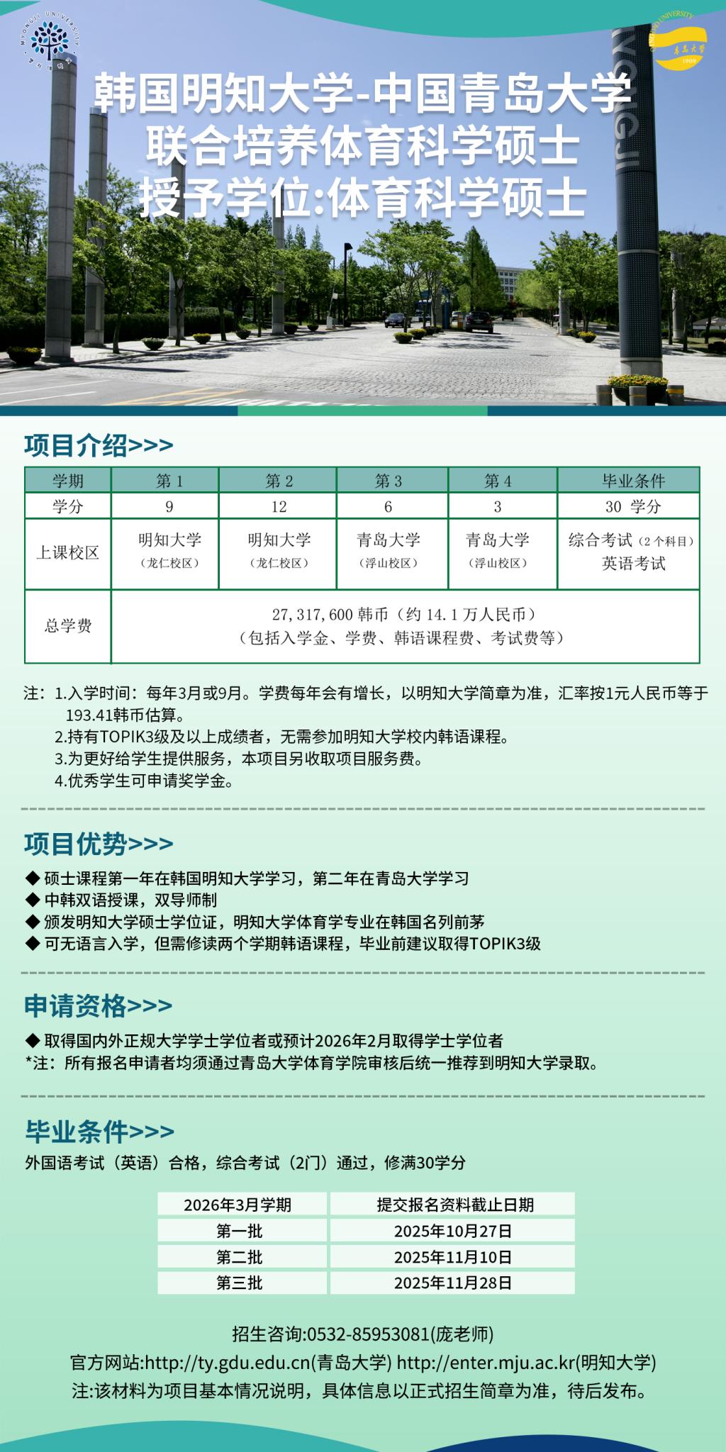 联合培养体育科学硕士项目
