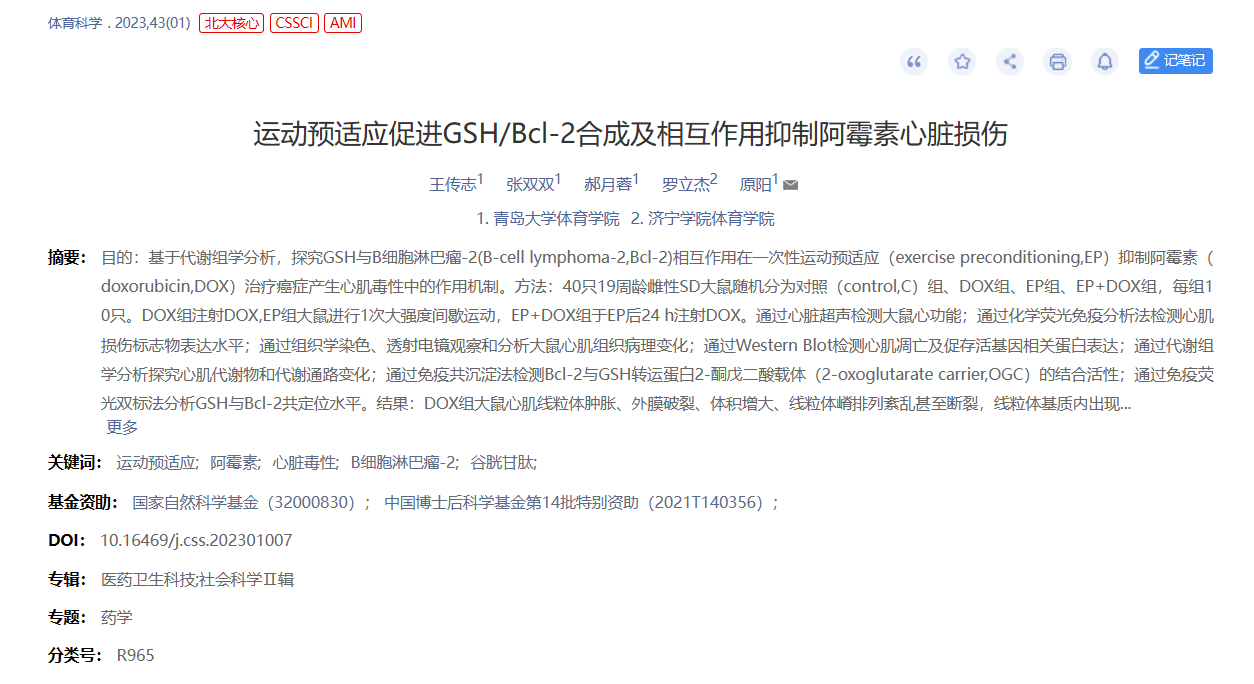 生活中,原老师与王传志亦师亦友。学习上原老师经常与他一起分享科学前沿,探讨研读文献,设计实验思路。从复杂的分子生物学实验的学习到文献综述的多次修改。他们互相进行深度的思维碰撞,共同寻找新的发展方向。运动促进心血管健康的机制研究一直以来都运动生理学领域的前沿热点,通过二人多次的探讨与其自身的文献积累,王传志最终确立了运动预适应预防阿霉素心脏损伤的这一课题方向。他的第一篇核心论文是在硕士二年级时期发出,临近过年,一边面临着分子生物学实验,一边修改着综述。他已经记不清第一篇综述修改过多少稿,被拒绝过多少次。最终,功夫不负有心人,历时一年,他的第一篇文章见刊。他时常告诉自己失败是成功之母,每一次小的突破,不断激励着他继续向前。