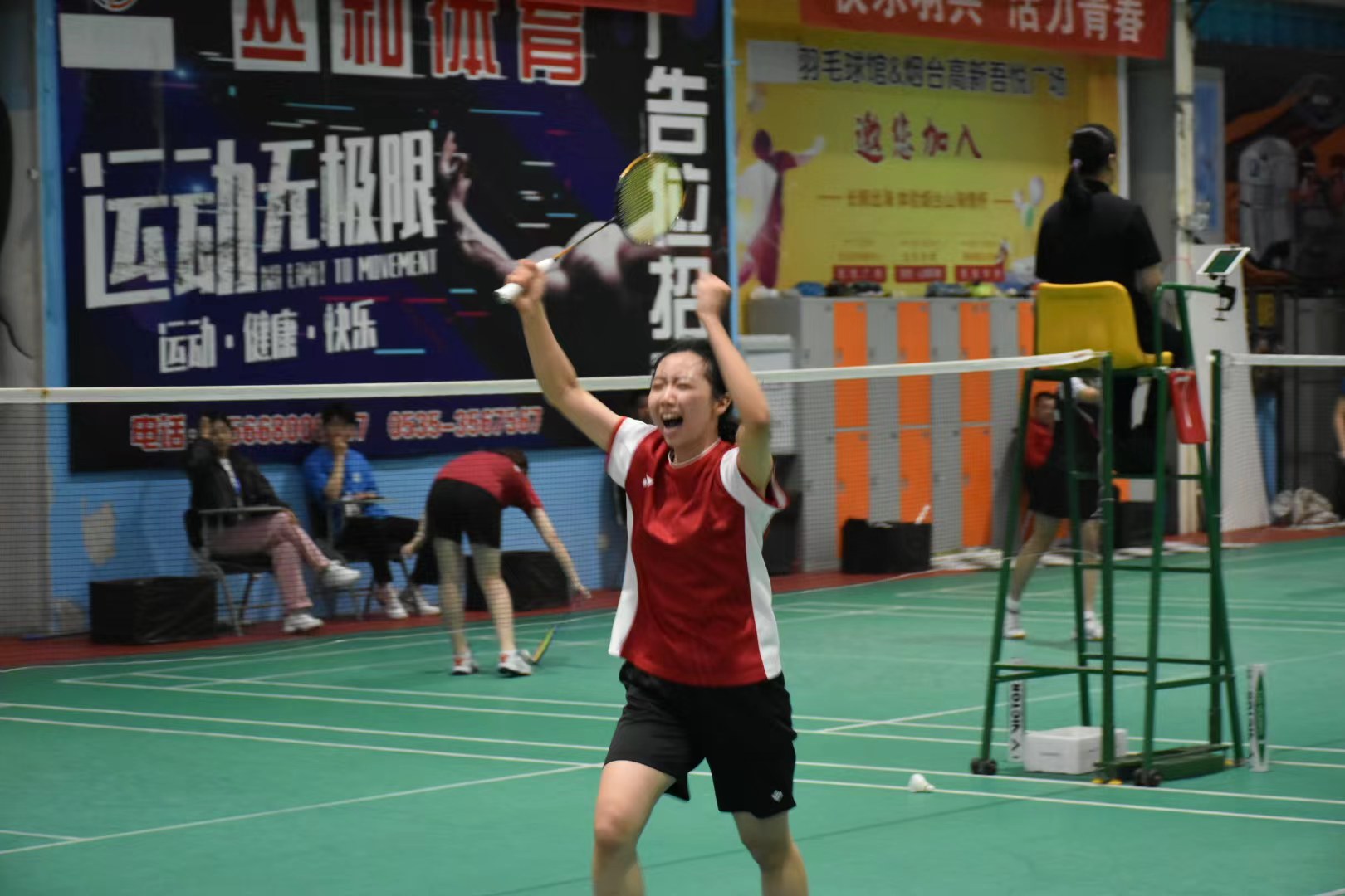 刘晨希同学咬紧牙关、顽强拼搏,曾打满三局获得关键场胜利。
